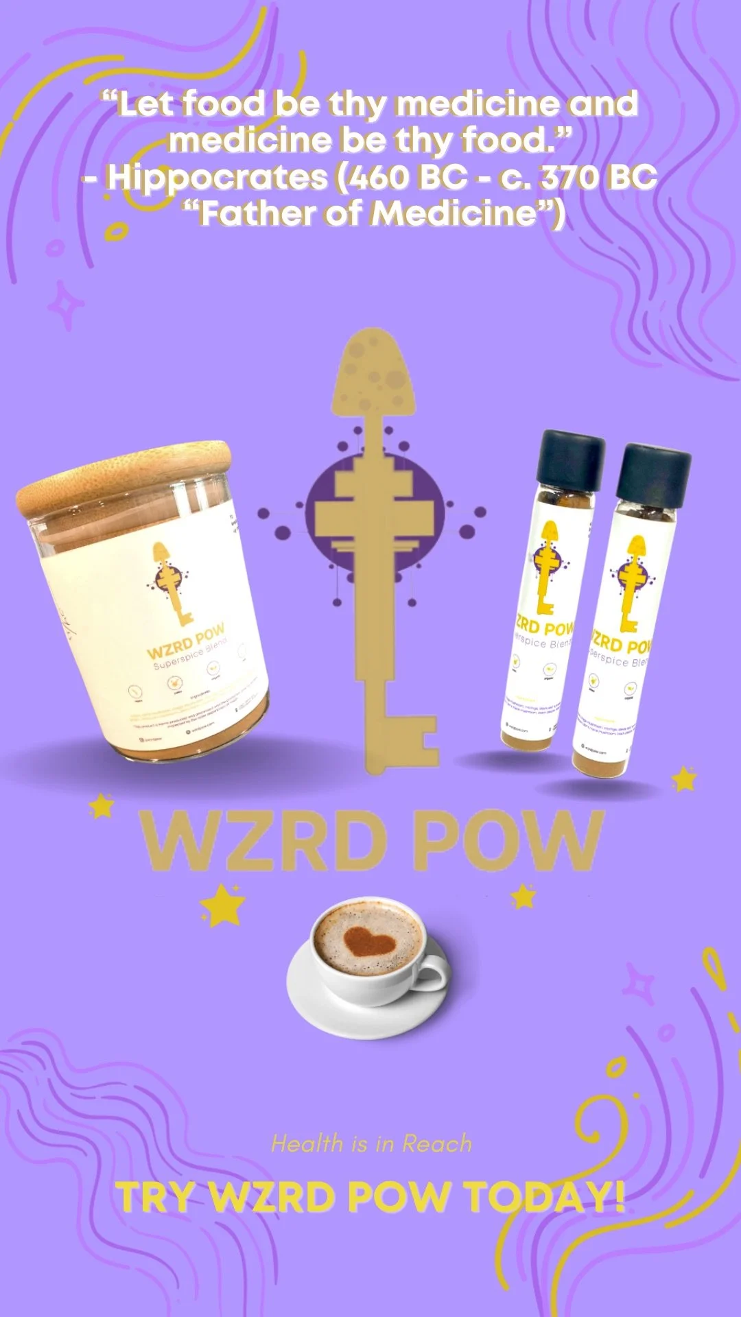 WZRD Pow is an original blend of spices and medicinal mushrooms with thousands of years of traditional use and a growing body of modern scientific research supporting their individual benefits.